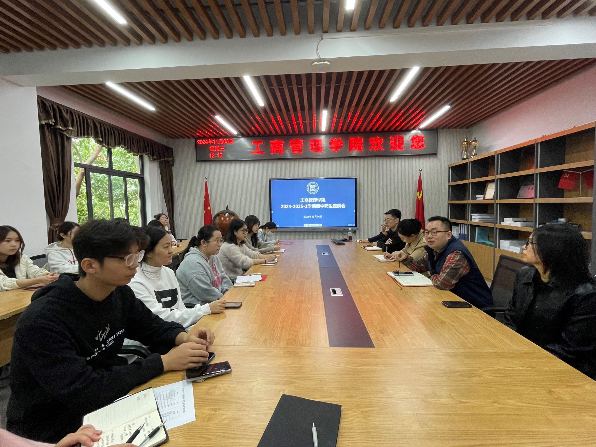 为提高本科教学质量,充分征求学生对学院本科教学工作的意见,2024年11月6日中午,学院在明德楼4010会议室召开了2024-2025学年第一学期期中师生座谈会。学院教学副院长熊艾伦、学院党委副书记程亚、各系部主任、部分教师代表以及学生代表出席本次座谈会。