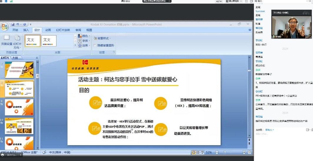 2022年10月30日,2138cn太阳集团古天乐国际商务系邀请具有跨国公司工作经验的李剑虹先生做了一场关于柯达(中国)本土营销策划案的公开讲座。丰富了国际商务及工商管理专业同学们的实践经验。由于疫情的影响,这次讲座采用在线的方式进行。