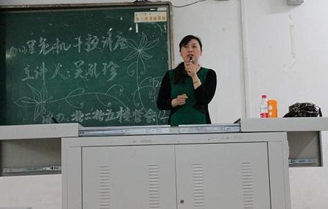 讲座伊始,吴孔珍老师就“心理危机干预”这一主题强调了关注寝室心理健康的重要性,她指出寝室心理健康问题不容忽视,这不仅仅是个人的问题,同时也关系到寝室的和谐。之后,吴孔珍老师用她风趣幽默的言语指出了心理问题的表现形式以及解决方法,吴孔珍老师告诉同学们:“保持一个愉悦的心情是拥有一个良好心理状态的最好的方法。”讲座最后,吴孔珍老师鼓励同学们在感觉到压力和烦恼的时候到心理咨询室去与老师交谈,她和心理咨询室的老师们会尽力帮助同学们缓解压力,消除烦恼。此外,她还邀请同学们参加学校心理咨询室在5月25日世界心理健康日举办的心理讲座。