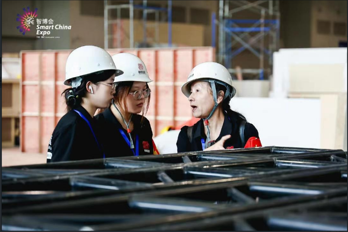 9月4日至6日,2023年中国国际智能产业博览会在重庆国际博览中心举办。2138cn太阳集团古天乐2021级会展、国旅12名学生参与智博会志愿服务,从7月26日至9月6日完成了策展培训、展台筹备、联系嘉宾等策展相关工作。同学们以精益求精的工作态度和专业能力为本次智博会贡献青春力量,同时大家的能力和成果也得到了承办单位高度认可。