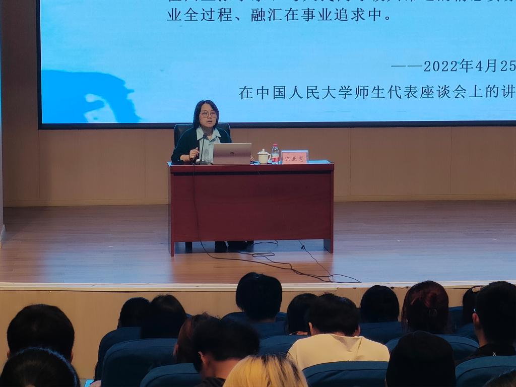 陈亚惠书记引用习近平总书记对青年的寄语,就青年担当与国家发展等方面,提出对青年一代的期盼与要求。陈书记指出,青年的价值取向决定了未来全社会的价值取向,表示广大青年骨干一定要筑牢理想信念之基,坚定社会主义核心价值观,以正确的价值观作引领,形成良好的社会风气。在讲座中,陈书记结合自身专业优势,用经济学相关的小案例,引导青年学生深入了解重庆的文化和地位,让学生进一步明白了中华民族伟大复兴的深刻内涵。此外,陈书记强调,青年是国家和民族的希望,是社会力量中最积极、最有生气的力量,广大青年骨干作为新时代的青年,要有朝气、有活力,能以青春之我为祖国建设添砖加瓦,以奋斗之我为中国梦放飞青春色彩。