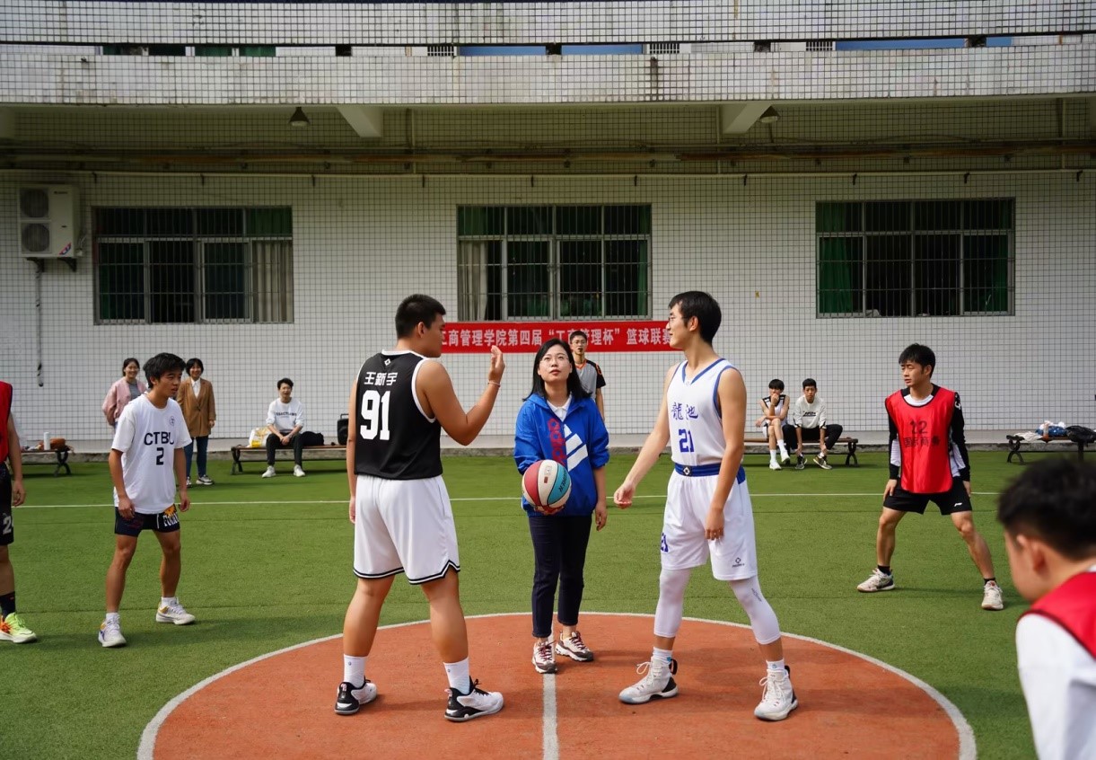 随着哨声响起,程亚为第一场比赛开球,第四届“工商管理杯”篮球联赛正式开始。