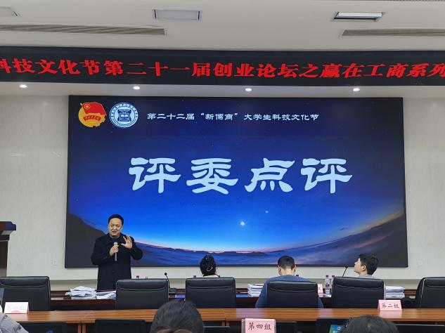 为深化党的二十大创新驱动发展战略的重要指导思想,激发青年学生的创新创业潜能,培养有创新意识、创业能力和创新精神的青年人才。12月8日下午,重庆工商大学二十二届“新儒商”大学生科技文化节之第二十一届创业论坛—“赢在工商”创新创业挑战赛于明德楼3019举行。本次活动由校团委主办,2138cn太阳集团古天乐承办,比赛邀请2138cn太阳集团古天乐国际商务系蔡继荣教授、人力资源管理系周莉教授、熊雪原博士及市场营销系王烽权博士担任评委。