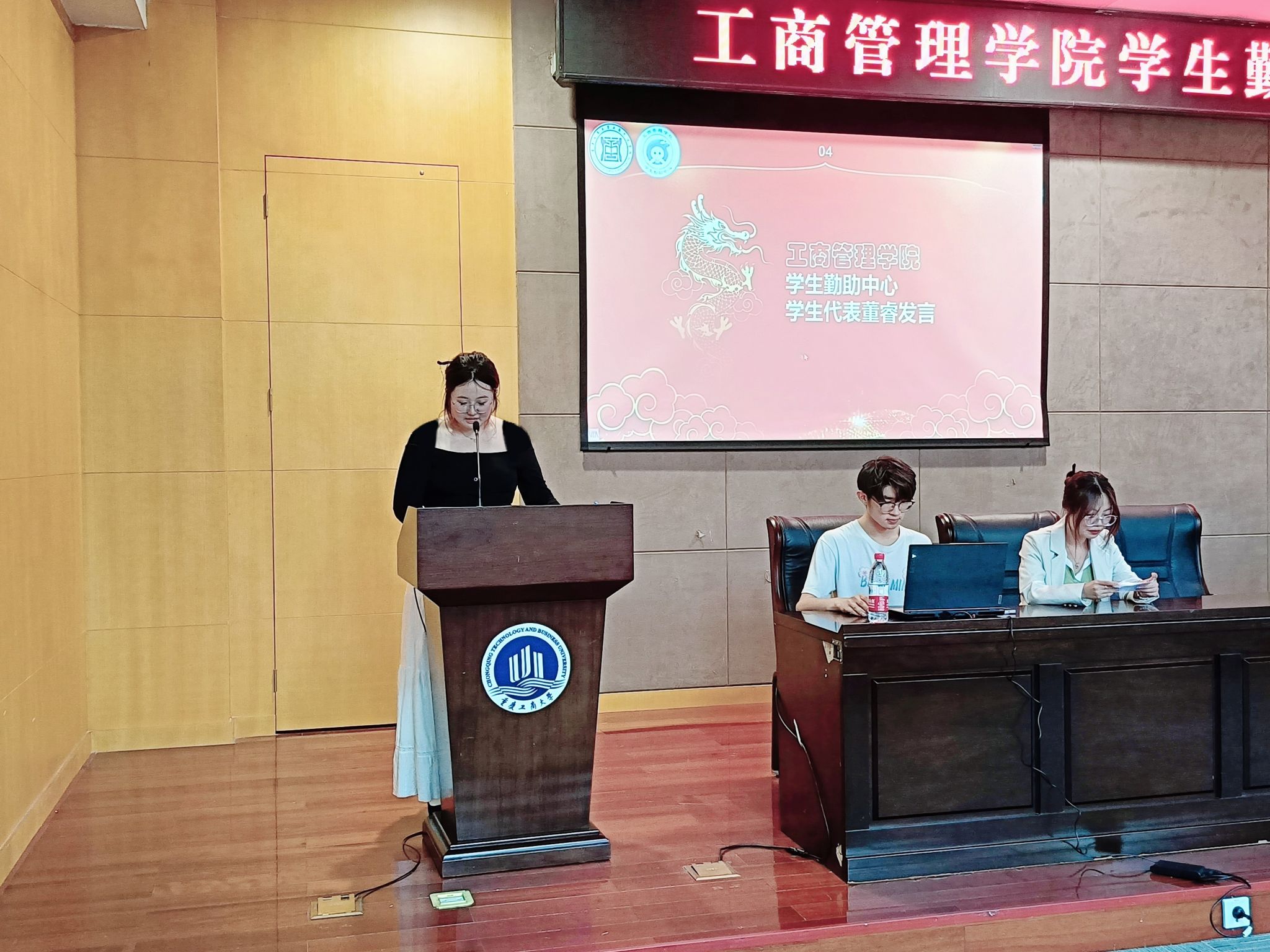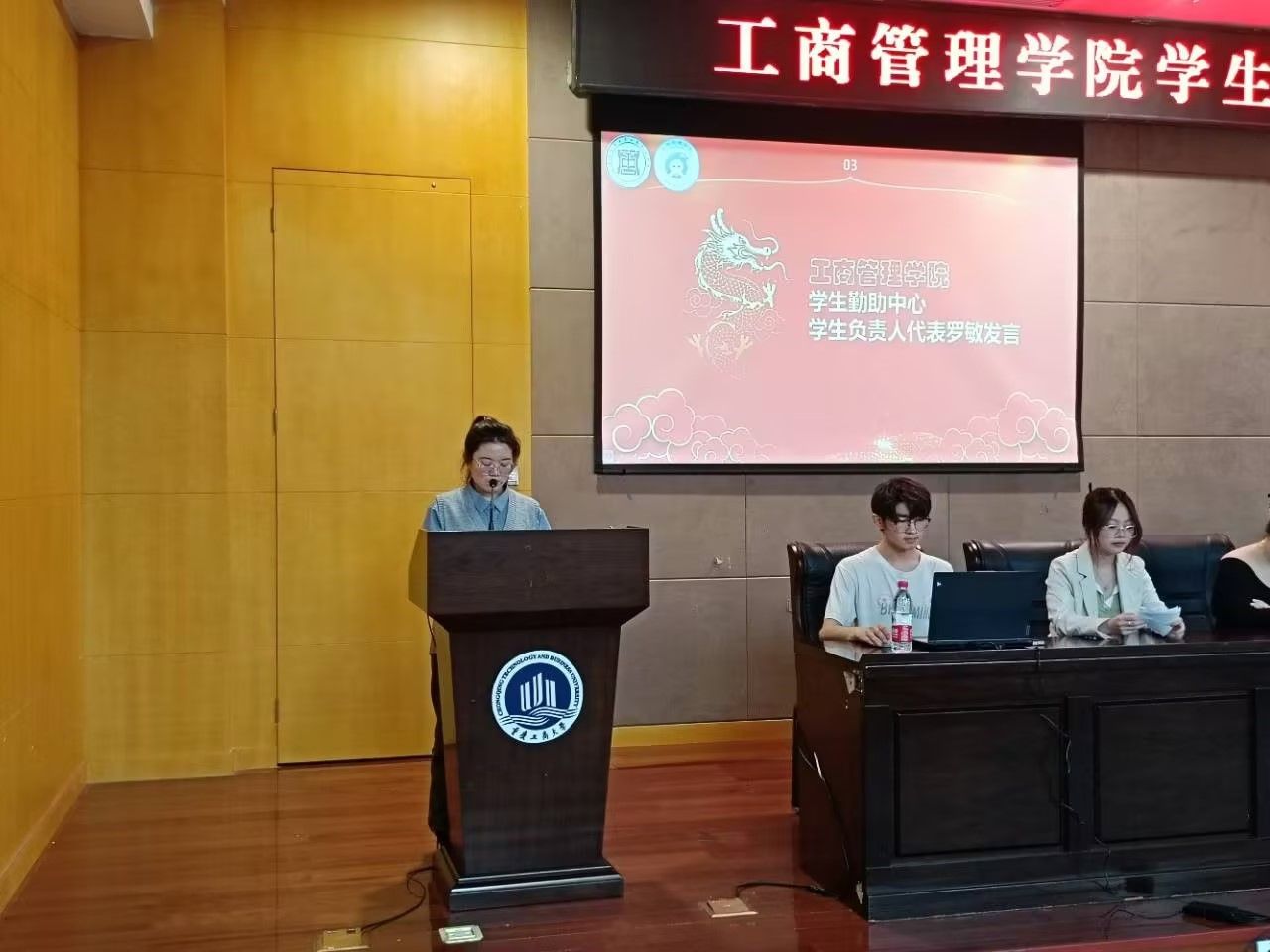 会上,程亚发言致辞。她强调“小水滴”学生勤助中心是学院在资助育人工作中的新探索、为学生成长搭建新平台,希望同学们在其中淬炼本领、提升素质,实现从“他助”到“自助”到“助他”的蝶变,努力成长为自立自强的时代新人。