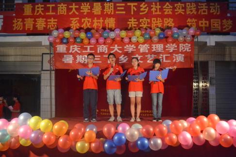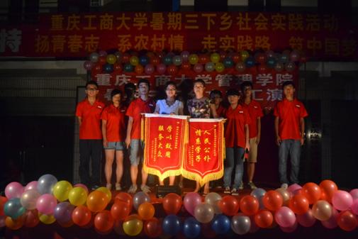 这是实践服务团在铜梁县庆隆镇文艺汇演所体现出的等式。7月18日晚7点,管理学院“三下乡”大学生教育帮扶实践服务团文艺汇报表演在庆隆镇社区广场顺利举行。