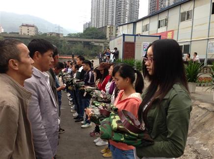 伴随着《当爱聚集的日子》的旋律在工地上空飞扬,我院义协2013-2014年度首次活动暨“情系农民工,爱心送军服”活动正式拉开了序幕。