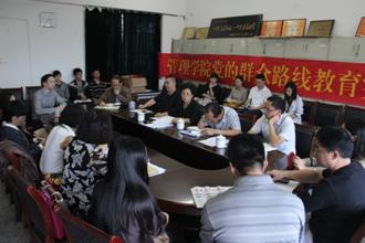 9月23日至25日,习近平总书记指导省委常委班子专题民主生活会时多次强调:“教育实践活动越往后,越要坚持标准,决不能虎头蛇尾,决不能用自我感觉代替群众评价。”“作为共产党人,有话要放到桌面上来讲。”为落实总书记重要讲话的精神,学校党委朱伯兰副书记于近日全程听取了管理学院党总支举行的党的群众路线教育活动意见征集座谈会。