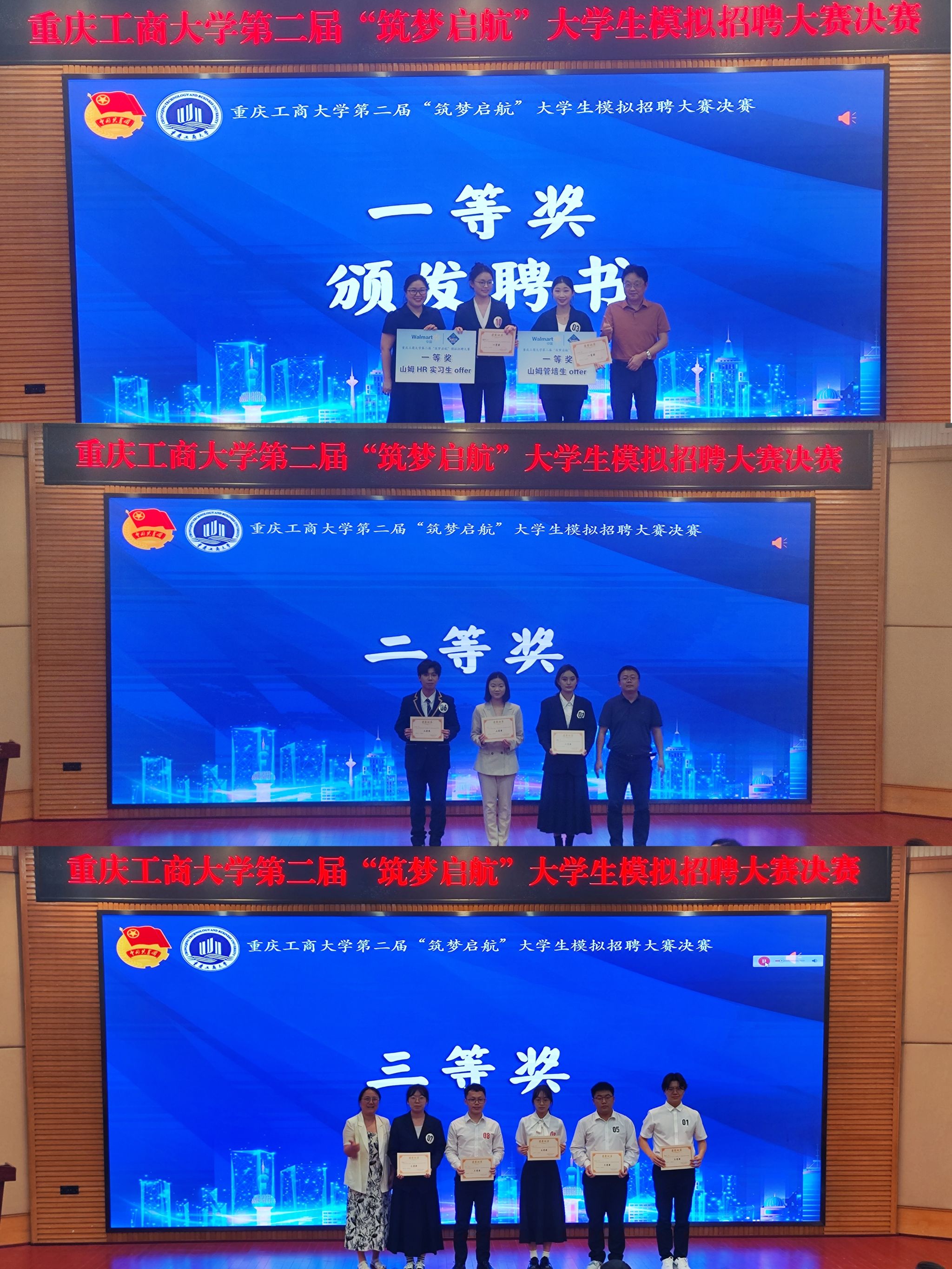 决赛中,选手们在自我介绍、无领导小组讨论、专业问答三大环节中,充分展示自我,个个特色鲜明、亮点突出。评委尖锐的提问和精彩的点评,将比赛推向高潮。最后经过激烈的角逐,21级人力资源管理专业刘小渲和22级法学专业蒋梦萱荣获一等奖并获得山姆HR实习生offer、山姆管培生offer,其余同学分获二、三等奖。