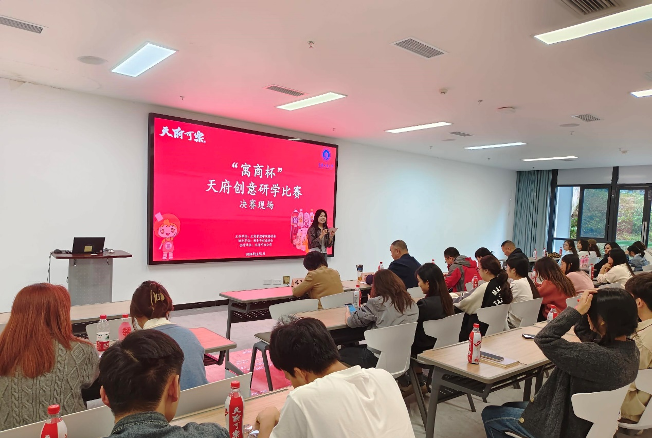 决赛现场精彩纷呈,包括嘉宾致辞、研学成果展示及现场问答三个环节。学院特别邀请了天府可乐(重庆)饮品有限公司副董事长钱黄先生担任评审嘉宾,他分享了宝贵的企业管理心得,为学子们拓宽了商业认知的边界。