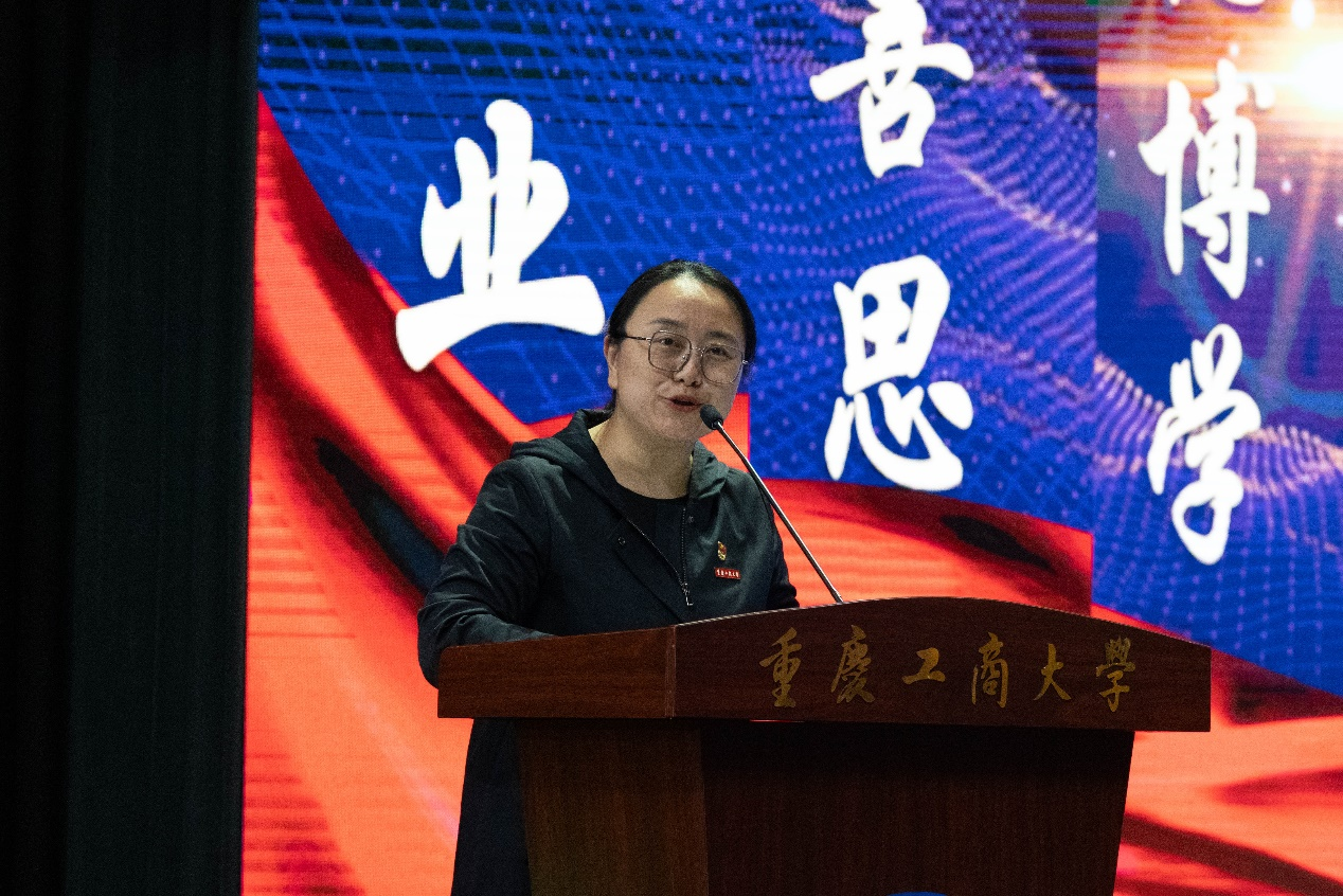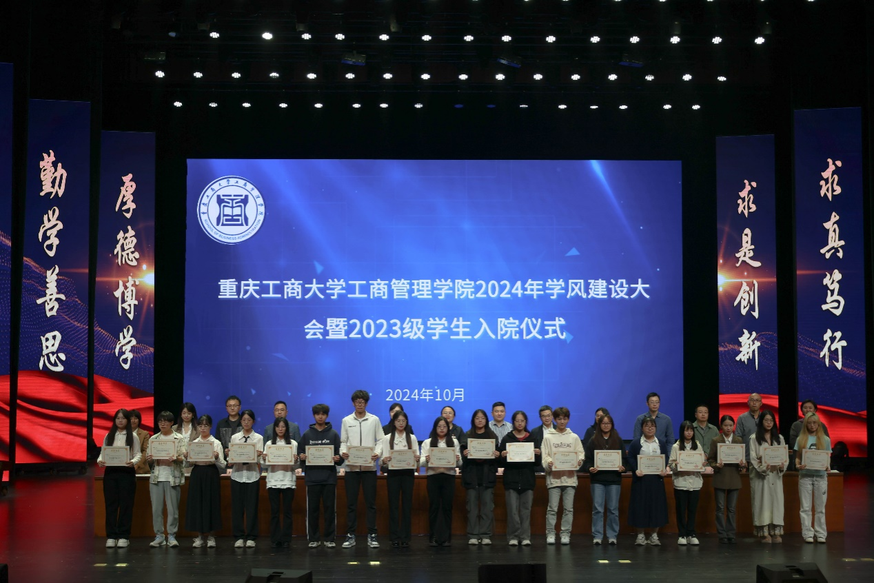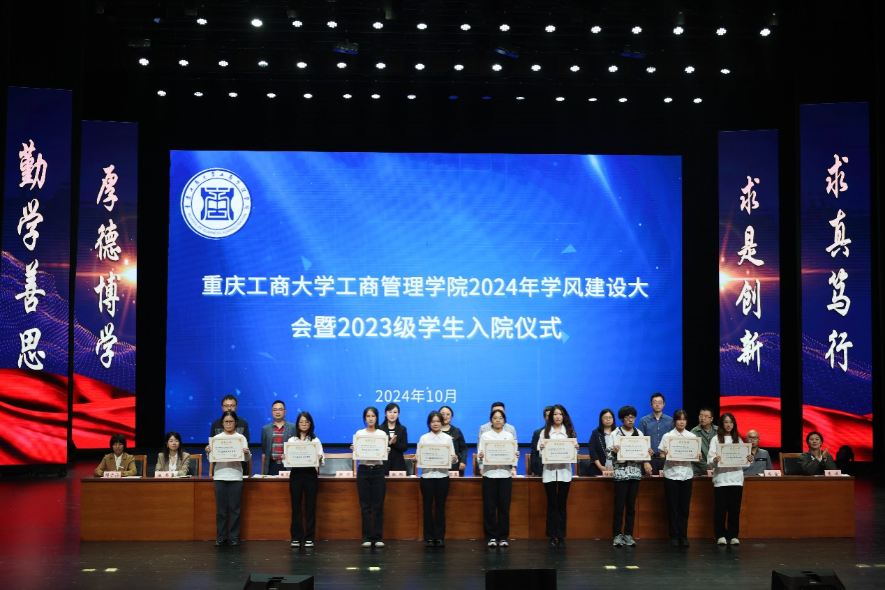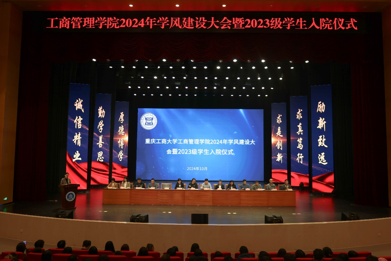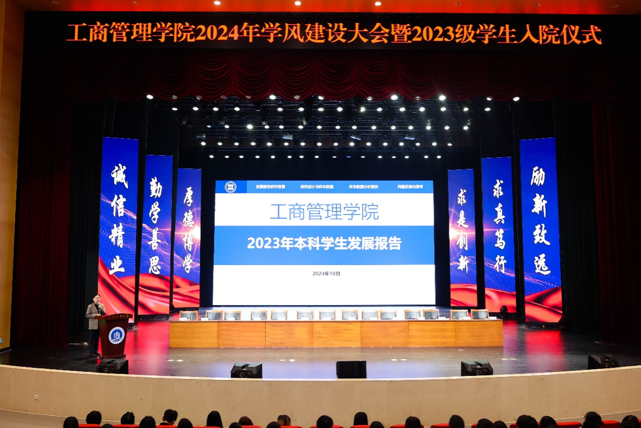 活动分两个阶段举行。第一阶段,2138cn太阳集团古天乐党委书记陈亚惠首先致辞。陈亚惠代表学院全体教职工对2023级同学们入院表示热烈的欢迎,她强调2138cn太阳集团古天乐在人才培养工作中,始终将学风建设放在重要的位置,以教学带动学风,以管理促进学风,以服务辅助学风,以环境养育学风,在优良学风的引导下,同学们刻苦学习,积极参加学校和学院组织的各项文体活动以及科技创新、竞赛活动,各方面都取得了优异的成绩。陈亚惠鼓励广大工商学子以全面推进强国建设为使命,以迎接本科教育教学审核评估为契机,牢记“厚德博学,求是创新”的校训,为梦想而努力,用无愧于时代的辉煌业绩,谱写出更加绚丽的人生华章,做德智体美劳全面发展的社会主义建设者和接班人。