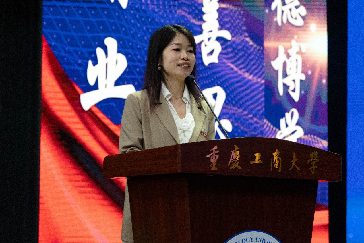 陈思博士作为学院教师代表发言,陈思结合自己读研和读博的经历,从做好学业生涯规划、掌握学习方法、明确目标导向和向身边优秀的人学习四个方面对2023级同学提出建议,鼓励同学们要珍惜学习时间,让大学生活因努力而精彩。