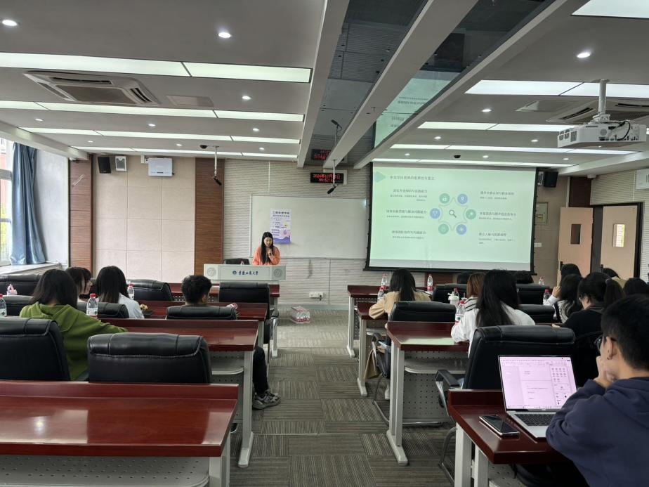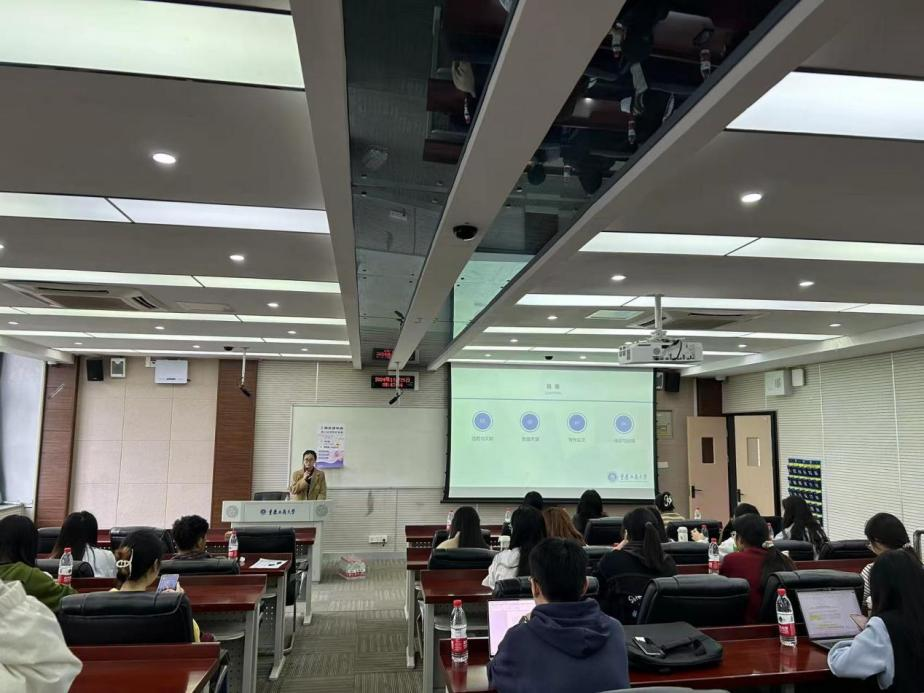 嘉宾分享环节中,曹谦谦同学首先从选题与文献、数据支撑、写作论文以及修改与投稿方面详细讲述了关于论文写作的相关技巧,分享论文写作技巧与心得;紧接着,曹春梅、徐小媛和蒋芳同学分别从项目的研究背景、研究方法、以及在项目实施过程中遇到的挑战和解决方案等方面,分享科研项目相关知识。谢雨晴同学与现场的研究生分享了竞赛相关知识。学姐们的经验分享不仅为同学们提供了宝贵的科研知识,也为那些有志于投身科研的同学指明了方向。