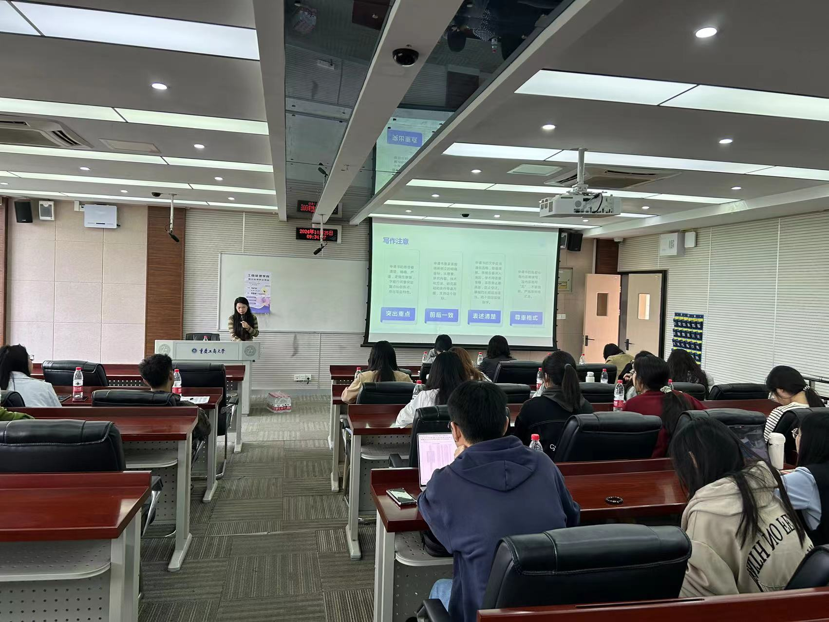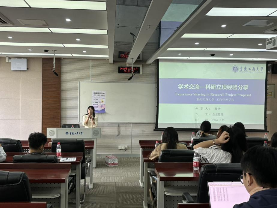 太阳集团21382138cn太阳集团古天乐研分会于2024年10月25日8:30在明智楼110405教室举行“研究生学术文化节”学术交流会活动,并取得了良好的现场活动效果,有效促进了研究生学术思想的碰撞与融合,激发了研究生的创新思维和研究热情。此次活动由研工部主办,2138cn太阳集团古天乐研分会承办,研分会成员卢梦担任主持人,2138cn太阳集团古天乐20余名研究生参与了本次经验分享活动。受邀嘉宾有2022级企业管理曹谦谦、2023级企业管理曹春梅、2023级企业管理徐小媛、2023级企业管理蒋芳以及2023级国际商务谢雨晴。此次“研究生学术文化节”学术交流会活动由特邀嘉宾分享环节、提问答疑环节以及抽奖环节组成。