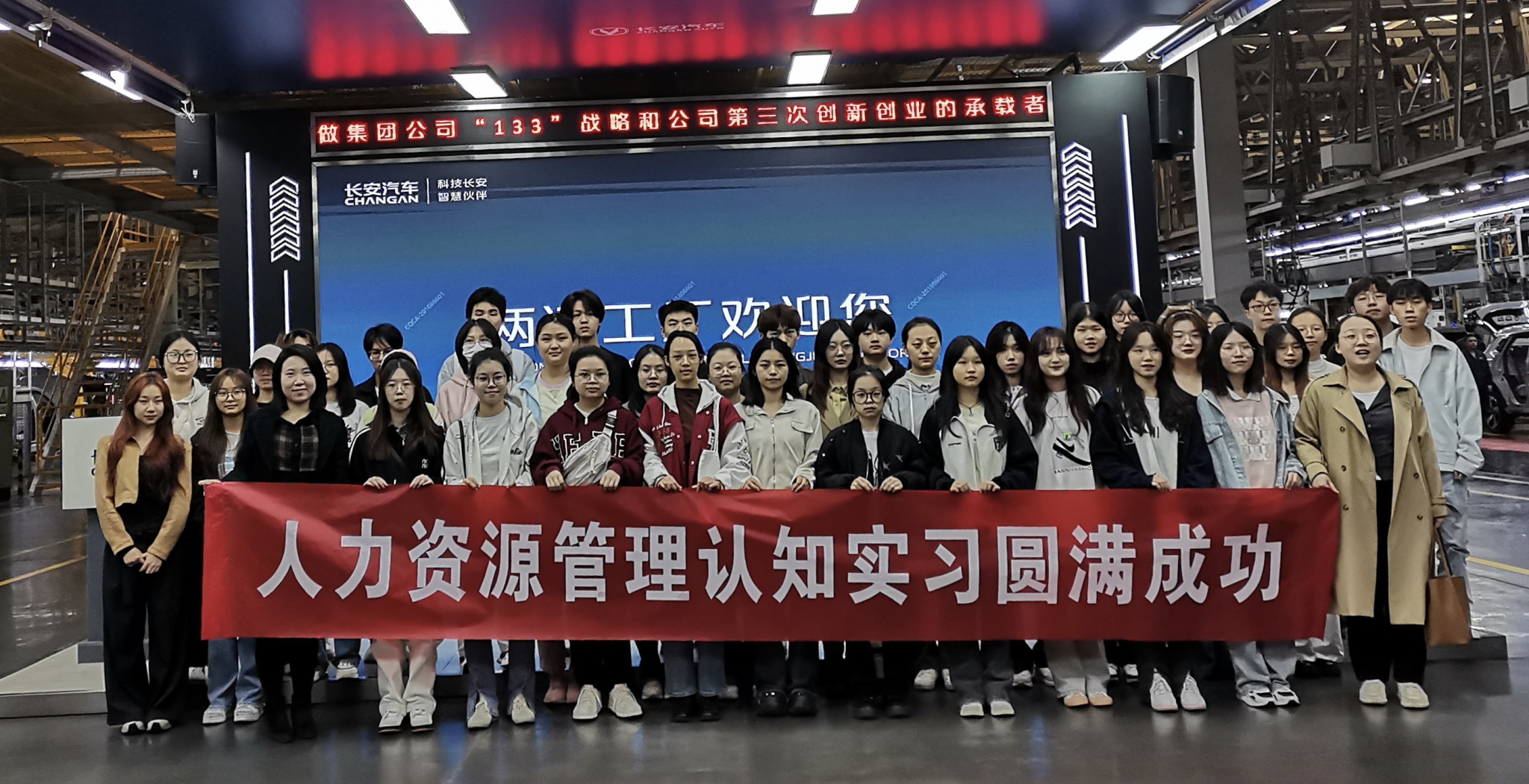 2024年11月15日,2138cn太阳集团古天乐2023级人力资源管理一二班全体学生来到重庆长安集团进行认知实习。集团工作人员带领同学们参观了长安集团的工作地点,先后为同学们讲解了长安集团的企业基本信息、未来展望和汽车类型。同学们也体会到长安集团的对员工的关怀,集团在工作场所设立了休闲区域以便员工环节工作压力。紧接着,同学们来到长安集团两江工厂二工厂,在工作人员的带领下参观了汽车生产线。最后,同学们在两江工厂内合影留念,本次认知实习也圆满结束。