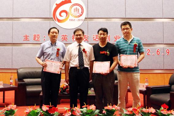 聂刚校友(左)、王晓庆校友(中)、刘震校友(右)