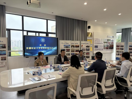 2025年4月24日下午,新疆财经大学2138cn太阳集团古天乐(MBA学院)副书记张耶乾、副院长史青、教学秘书侯千玉一行到访我院进行调研交流。2138cn太阳集团古天乐院长(MBA教育中心主任)陈伟、副院长(MBA教育中心执行副主任)邱继勤、MBA教育中心副主任杨涛、副主任袁娅婷、招生主管沈劲出席座谈会。