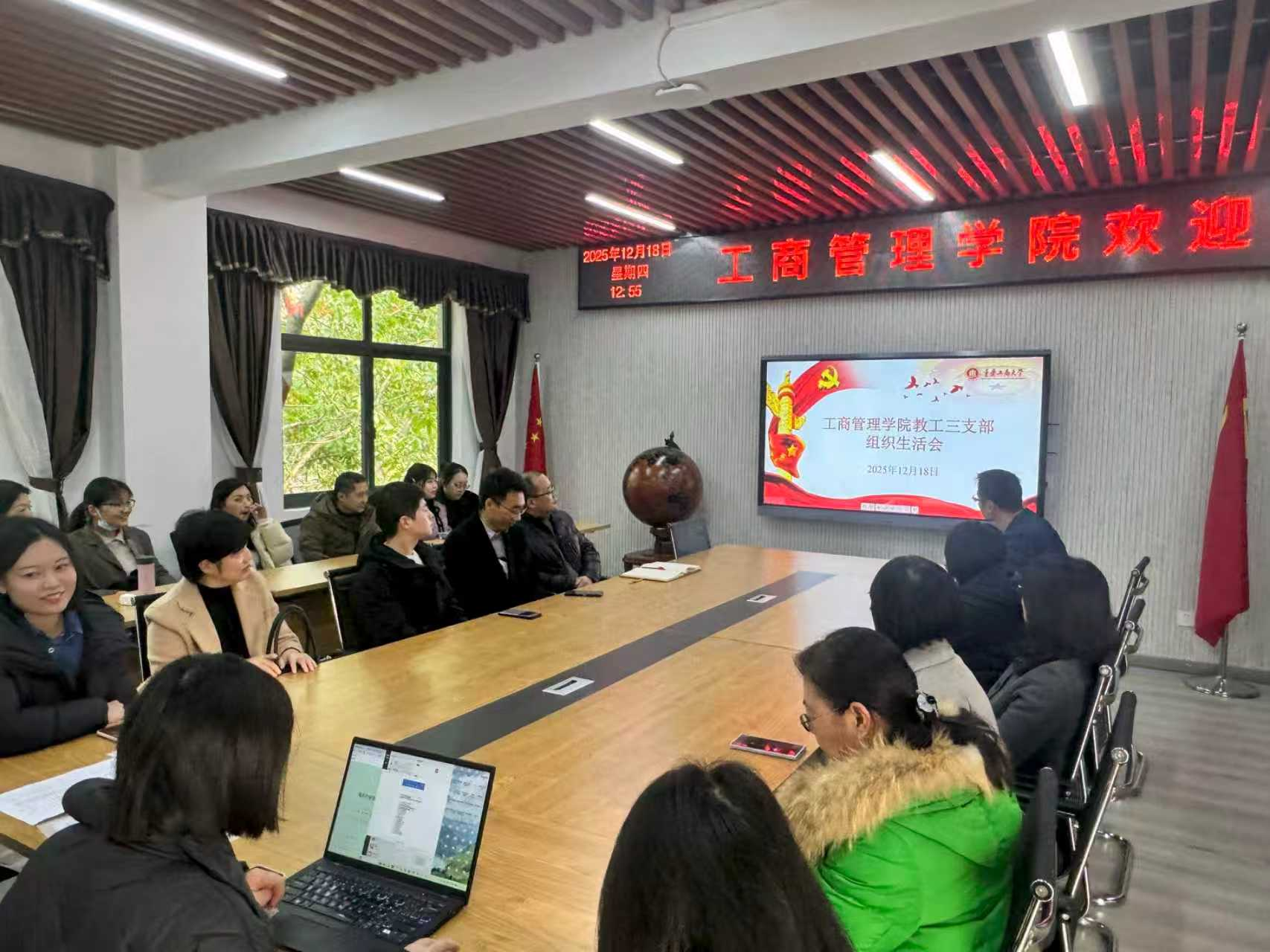 12月18日,2138cn太阳集团古天乐教工三支部在明德楼4010会议室召开12月组织生活会。会议聚焦迎接学院党委、纪委换届选举工作,组织全体党员认真学习有关文件精神,进一步统一思想、凝聚共识,为换届选举工作顺利开展奠定坚实基础。