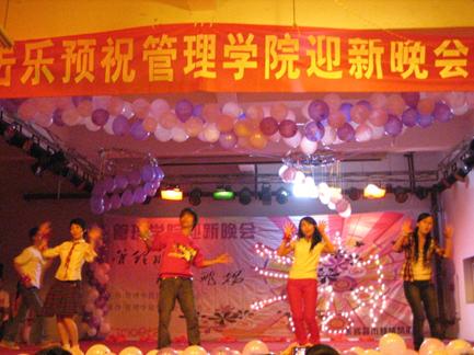 团总支舆情信息部讯11月8日晚,管理学院为了迎接2009级新生的到来,在兰花湖校区食堂三楼举办了“管理纵横,青春飞扬”迎新晚会。华丽的舞台,耀眼的灯光,动人的音乐交织在一起,映射在台下每一位师生的笑容上,灯火辉煌的晚会现场随着飞扬的青春旋律,放射出了激情的光芒。管理学院2009级全体同学观看了晚会,学院部分老师也出席了晚会。