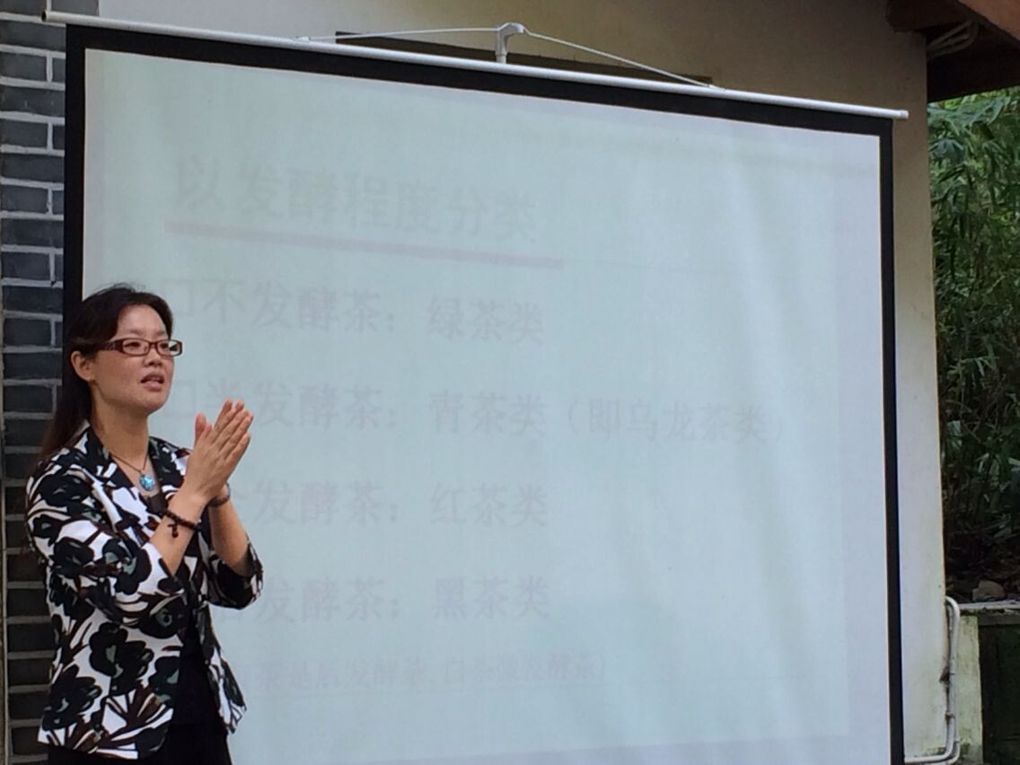 胡博士从“茶是中国向世界递出的一张名片”开始谈起,从识茶之美、知茶之效、品茶之香三个方面为我们分享了茶的知识,并大力推荐了喝茶这一健康的生活方式。演讲中谈到茶叶基本分类有六种,分别是绿茶、青茶、红茶、黑茶、黄茶、白茶;按发酵程度可分为不发酵茶、半发酵茶、全发酵茶和后发酵茶。茶树一般生长在海拔较高的山上,通常说“高山云雾出好茶”,从采茶到制茶的工艺过程都不加入任何添加剂,体现了茶叶的干净纯洁之美。喝茶对身体大有裨益,比如有助于提神醒脑、抗菌消炎、抗癌抗辐射、抑制心血管疾病、美容护肤、护齿明目、降脂助消化等。