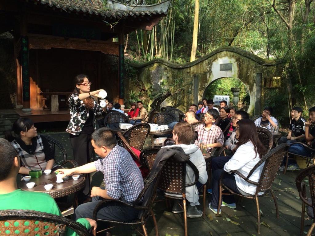 此次论坛在南山书院的庭院中举行,大家一边观看着胡博士精心制作的PPT,一边品着悠悠茶香,一边听着胡教授对茶文化的精彩阐释,对着南山的修林茂竹,其中之乐,唯有出席论坛的嘉宾和听众们能深得其中滋味,如痴如醉,其乐不仅在舌尖之茶香回甘,更在我们心头对茶文化增进了解之愉悦!