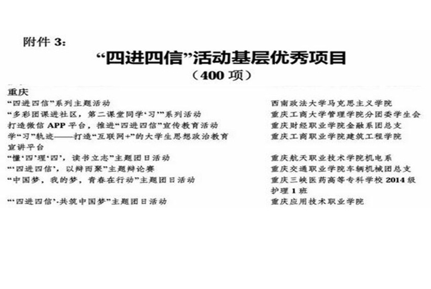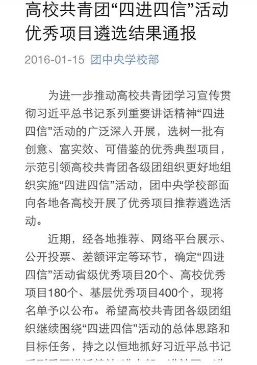 管理学院荣获全国高校共青团“四进四信”活动优秀项目,有利于进一步帮助和引领学子牢固树立对党的科学理论的信仰,坚定走中国特色社会主义道路实现“中国梦”的信念,增强对党和政府的信任,增进对以习近平同志为总书记的党中央的信赖。