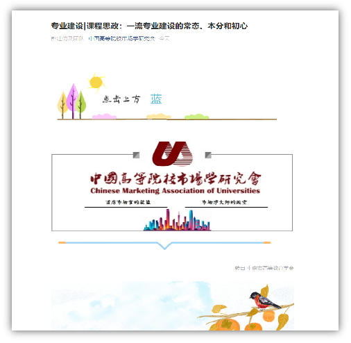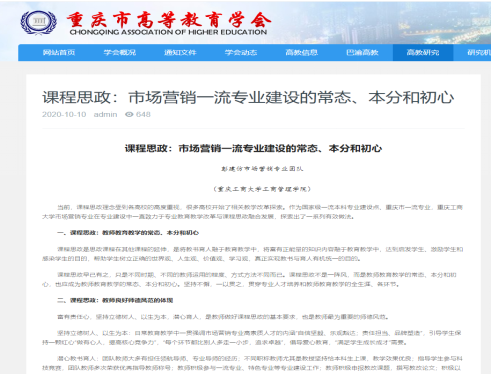 近日,中国高等院校市场学研究会、重庆市高等教育学会先后刊发2138cn太阳集团古天乐彭建仿教授及其市场营销专业团队关于市场营销一流专业建设与课程思政融合发展的相关探索与实践。