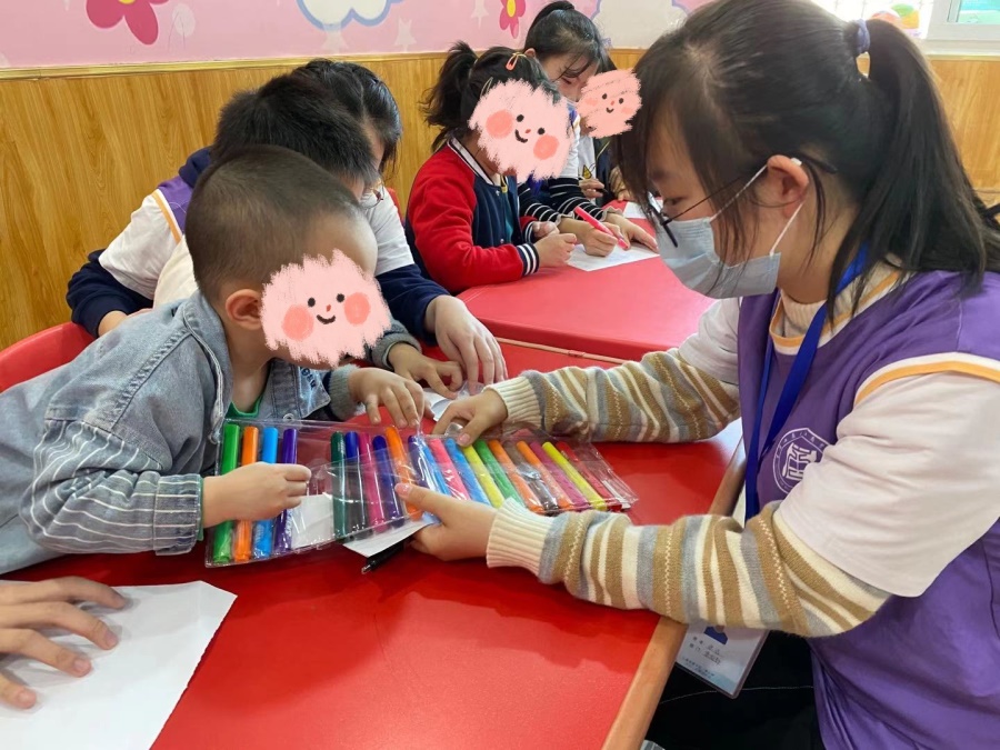 图1-2 志愿者指导小朋友画画
