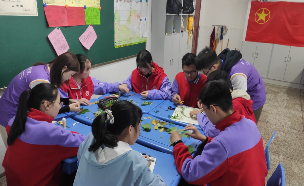 下午两点,活动在志愿者的协助下有序开始。本次活动以树叶贴画和跆拳道教学两种形式分别在两个班同时进行。在跆拳道教学课堂上,跆拳道社的成员们首先以ppt的形式为同学们介绍了跆拳道的来源以及跆拳道的各种基本动作。接下来,志愿者为孩子们详细展示动作并耐心教导他们,当出现错误时也会细心指导纠正,同学们积极配合且认真学习。与此同时,进行树叶贴画教学活动的班级也十分热闹:志愿者带来提前准备好的树叶和贴画,指导同学们分组协作,使其积极参与其中,充分发挥想象力,最终完成一幅又一幅精致又富有活力的作品。在讲述作品含义的过程中,也充分体现了他们的善良以及对这个世界的热爱。学校的负责人员也表示这次活动带给了同学们一次美好的体验,令他们度过了一个愉快的周末。