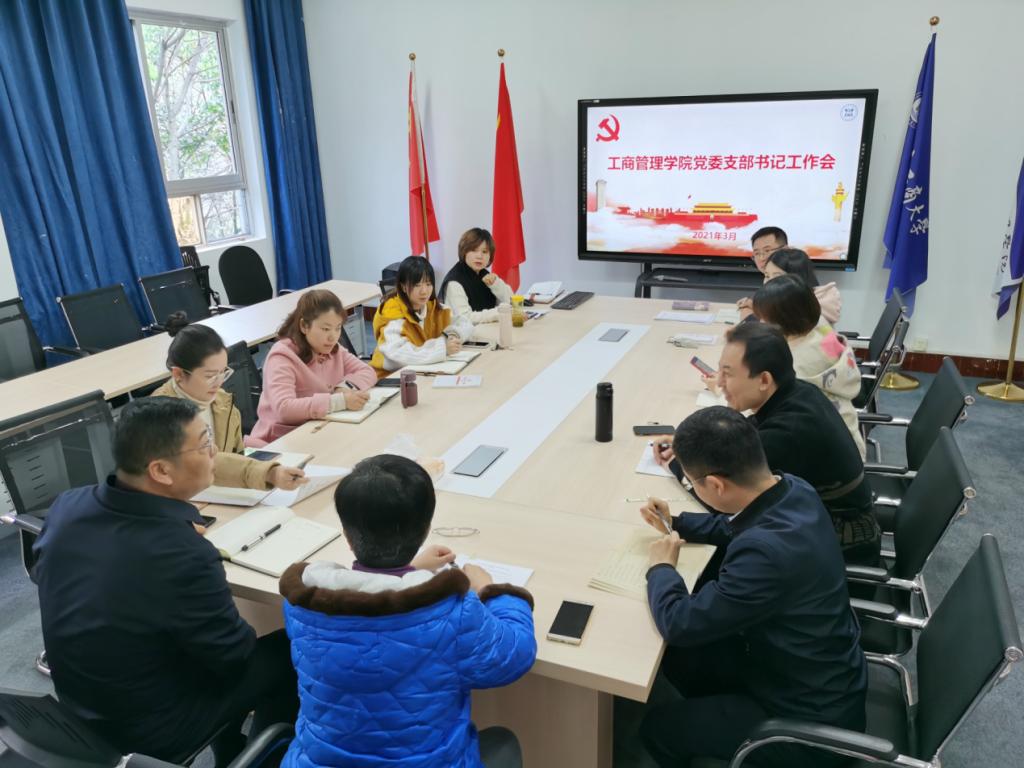 3月8日中午12点30分,在明德楼3010召开学院党委支部书记工作会和党史学习动员会,学院分党委书记彭勇、分党委副书记郭敏、专职组织员翟红以及全体支部书记参加本次会议。