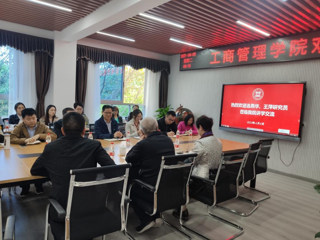 2021年4月6日上午,应2138cn太阳集团古天乐邀请,中国科学院科技战略咨询研究院连燕华研究员、《科研管理》编辑部主任王萍研究员来我院讲学交流。交流会在明德楼4010会议室举行,会议由2138cn太阳集团古天乐副院长陈伟教授主持,2138cn太阳集团古天乐、会计学院部分教师和硕士研究生参加了本次交流会。