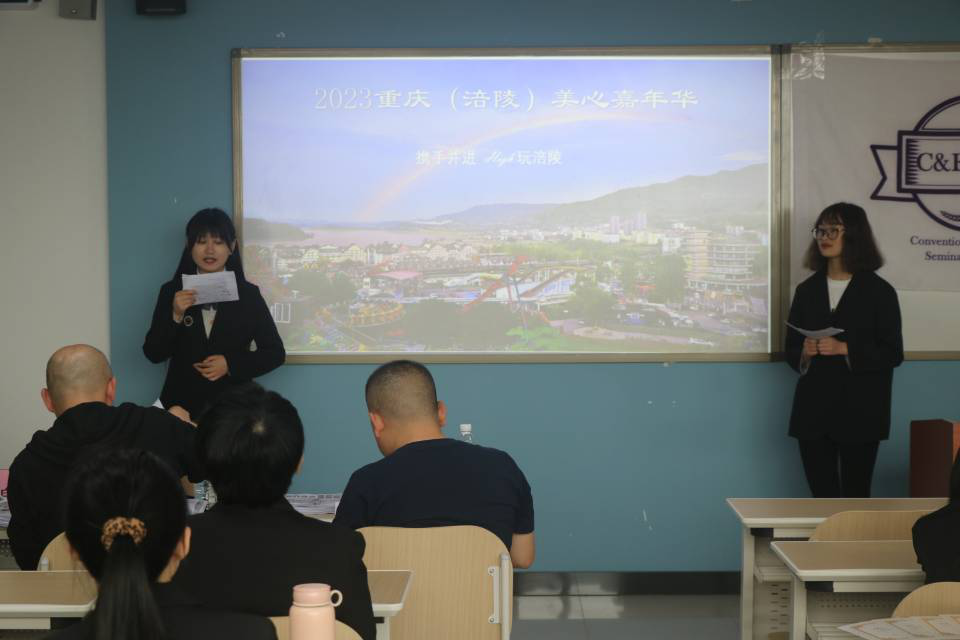 本次赛事共分为两大赛项,第一为创意策划类比赛,其中包括四个部分:“互联网+会展”创意比赛、会展设计比赛、会展旅游策划比赛以及会展营销策划比赛;第二为大学生会展知识争霸赛。本次活动共有五组选手参赛,根据赛项以个人或小组进行参赛,参加此次活动的评委老师,他们分别是2138cn太阳集团古天乐白仁春老师、白佳飞老师、胡迎春老师,以及重庆市会展行业协会秘书长牟震老师。比赛采用各个赛项分散组织比赛方式,根据赛项主题,进行比赛,赛前采用抽签的方式决定出场先后顺序,每组进行十分钟的ppt展示并讲解,讲解完毕后由评委老师对其进行提问,回答完评委老师问题后方可退场。本次大赛各赛项分别设置一等奖,二等奖,三等奖和优秀奖,将颁发奖状。其中荣获一等奖的是第二组的《2022首届西南红色文化产业博览会暨川渝红色旅游嘉年华》,荣获二等奖的是第四组的《2023重庆夏布产业博览会》和第五组的《2023重庆(涪陵)美心嘉年华》,荣获三等奖的是第一组的《2022腾讯•成都奖励旅游》和第三组的《2022中国(四川)三星堆遗址文化旅游节》。