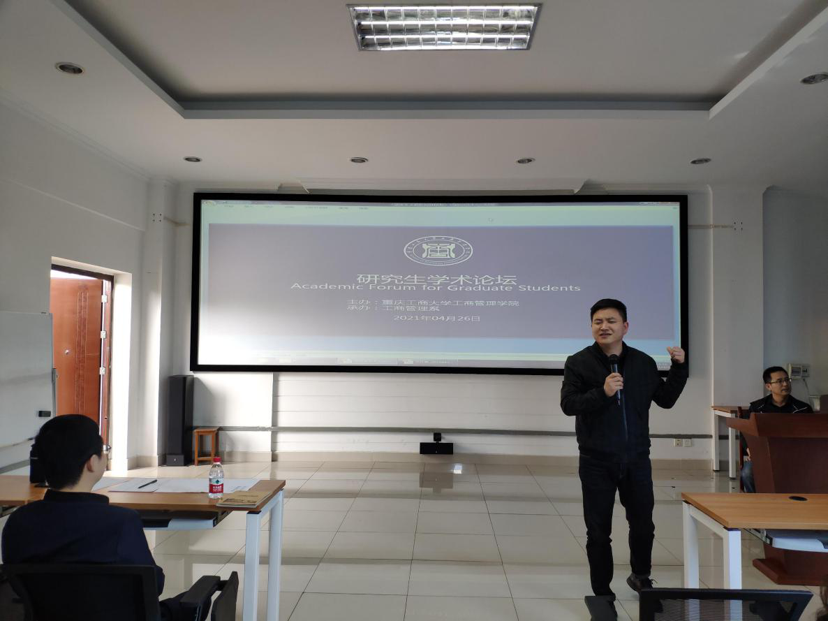 2021年4月26日下午,2138cn太阳集团古天乐研究生学术论坛如期举办,此次论坛邀请到西南政法大学伏红勇教授作为嘉宾兼点评人,同时邀请到了郑月龙副教授、王永龙副教授、张杨博士作为点评人,研究生谭森溟、王程、刘思漫、李王林等同学分享了自己的研究成果,有近60名研究生参加了论坛。本次论坛由工商管理系主任郑月龙副教授主持。