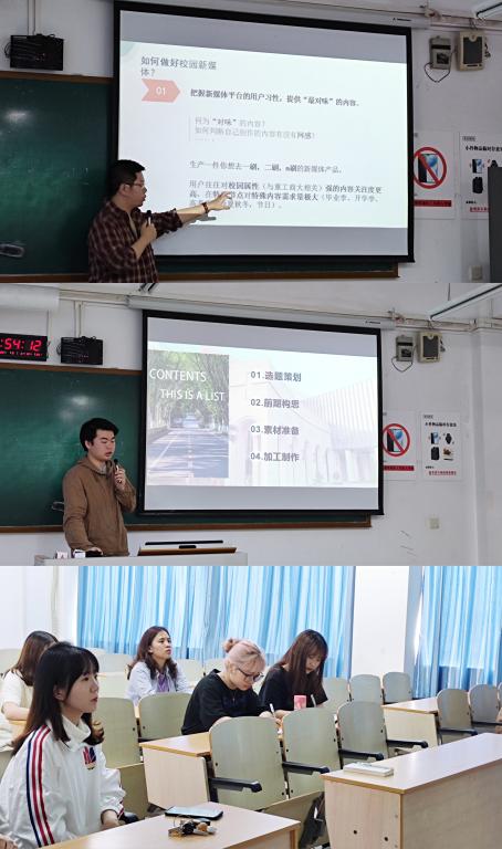 会议首先由肖哲为大家分享新媒体运营经验。肖哲从做新媒体是在做什么?为什么要做校园新媒体?如何做好高校新媒体三个方面进行了详细耐心的解说。希望融媒体中心的成员们能成为有责任、有脑洞、有耐心、有格局的“四有”校园“新”媒体人。接下来,刘俊从选题策划,前期构思,素材准备,加工制作四个方面分享了关于视频的制作,他提到,作为新媒体人,要有创造开发的精神,积极展示2138cn太阳集团古天乐的正面形象,辐射更多的受众群体。