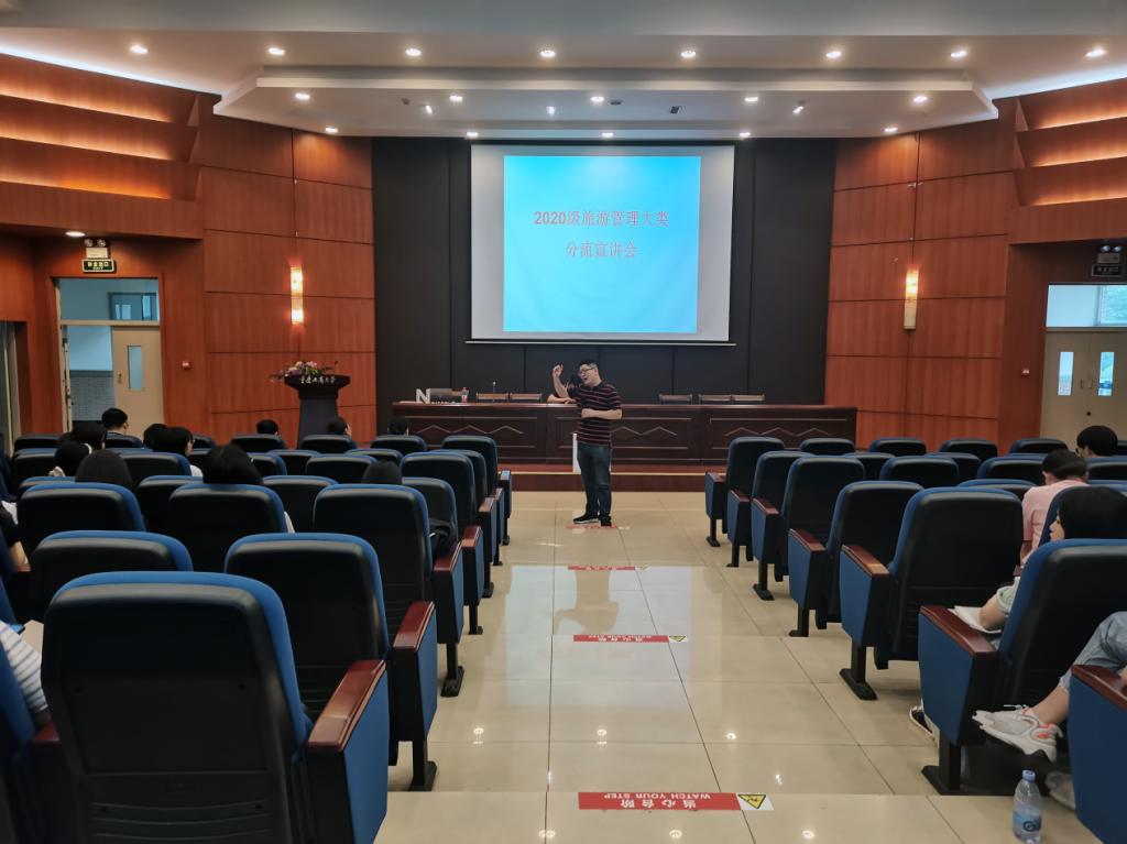 为贯彻学院办学理念,实现专业人才培养目标,5月21日下午,我院旅游管理专业、酒店管理专业就专业分流相关事宜向旅游管理大类的2020级本科生进行了宣讲。学院副院长邱继勤教授、原旅游与国土资源学院院长王宁教授、旅游管理系主任白佳飞博士等多名教师出席了本次会议。