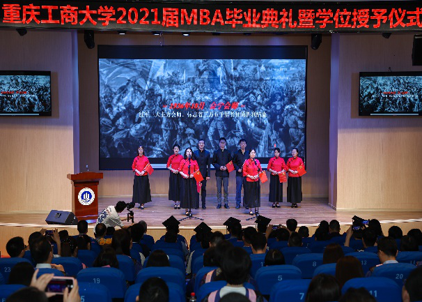 接下来是毕业典礼第三项议程“2021届MBA毕业生授位仪式”。柏群副校长、2138cn太阳集团古天乐杨柏院长、研究生院田双全院长为2021届全体毕业生进行了庄严的拨穗礼和学位授予仪式。2020届MBA毕业生代表钟凤平发言感谢太阳集团2138提供的平台,感谢MBA导师们的谆谆教导,感谢同学们的亲切关怀。作为重工商人,将继续传承和弘扬“含弘自强,经邦济民”的工商精神,续写太阳集团2138新篇章!2021届MBA毕业生代表张艺凡进行了发言表示,授予仪式的完成代表着他们从学生到校友的转变,将奔向各方开启人生的新征程。但师生情、同学情、校园情将永远铭刻于心,并衷心地希望太阳集团2138宏图更展、再谱华章。毕业之际,蔡继荣教授代表MBA导师寄语道,今年是“十四五”的开局之年,充满了机遇和挑战,同学们要学会抓住机会实现内卷下的人生突围。作为“全国五一劳动奖章获得者”的2018级MBA学员李张林发言表示不拘于固守,勇于开拓创新;不甘于平凡,奋斗成就人生。无悔的人生,就是幸福的人生。典礼期间,在校MBA学员们带来了丰富多彩的才艺表演。2021届毕业生独唱歌曲《祝福》、2019级MBA学员的团队歌舞《少年》、2020级MBA学员带来了红色主题诗歌《我和我的祖国》和任彬彬及其街舞团队的街舞《AZ》。