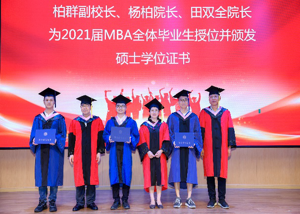 最后,柏群副校长向21届MBA毕业生表示了祝贺,并寄语同学们在走出校园后,面对更广阔的社会舞台,要努力去承担更多的社会责任,拒绝“躺平”,勇担使命,在奋斗中书写青春的华章。