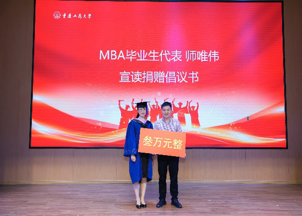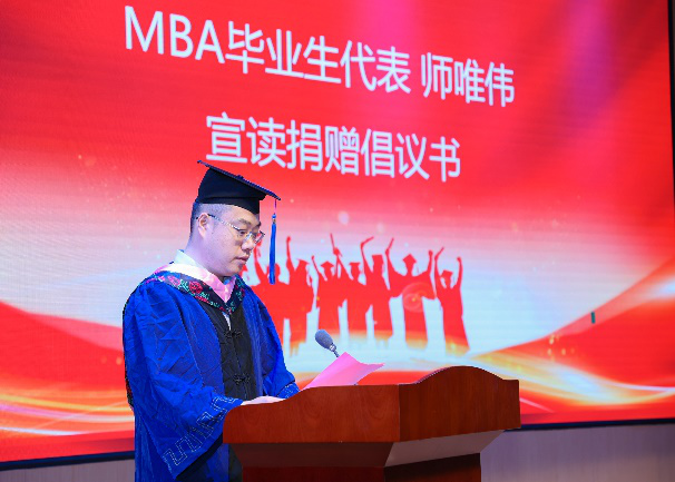 MBA毕业生代表师唯伟宣读捐赠倡议书