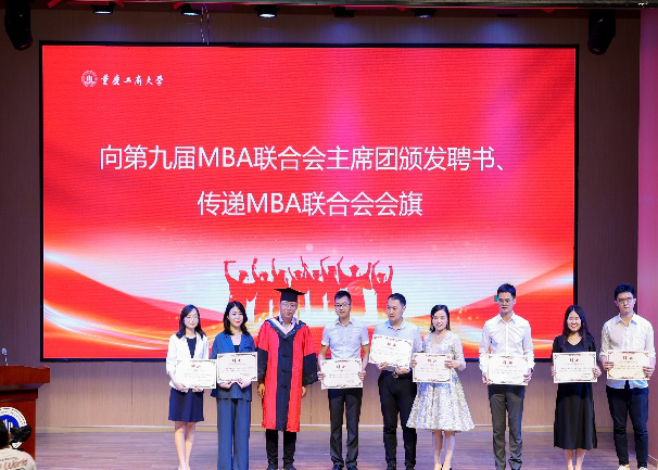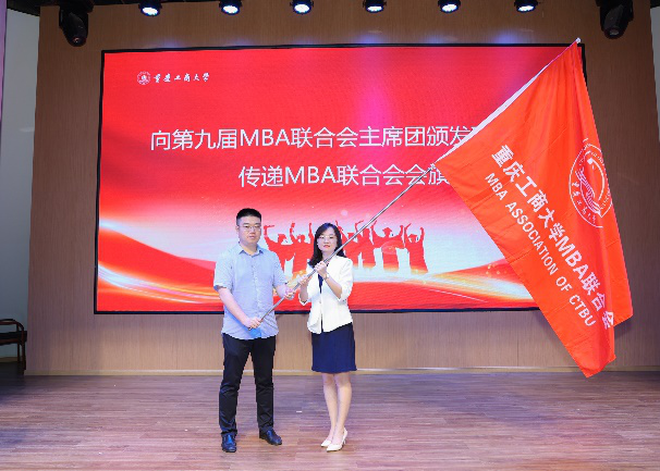 MBA第八届联合会主席师唯伟和第九届联合会主席吴丹丹进行授旗仪式