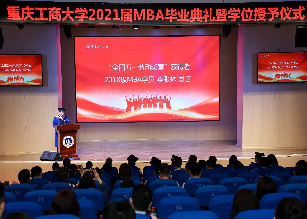 “全国五一劳动奖章获得者”的2018级MBA学员李张林发言