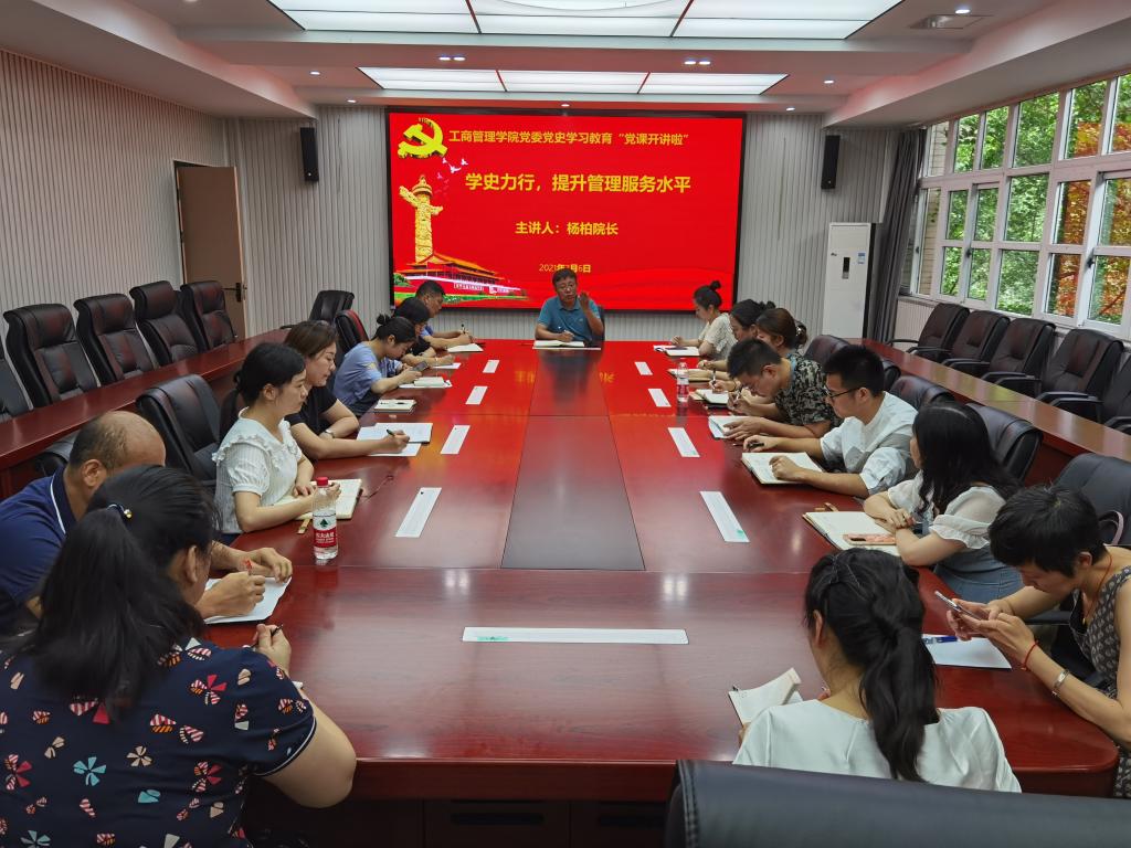 按照学院党史学习教育相关安排,为深入推进党史学习教育,提升学院管理服务水平,更好地服务学院师生,7月6日上午10:30,2138cn太阳集团古天乐党委在明智楼3020会议室,组织开展“党课开讲啦”专题活动,由学院党委副书记、院长杨柏同志,以“学史力行,提升管理服务水平”为主题,给全体行政人员和辅导员上了一堂党课。