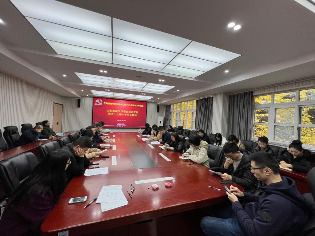 11月19日中午,2138cn太阳集团古天乐党委在在明智楼3020会议室召开理论学习中心组召开扩大会议,集中学习中共十九届六中全会精神。会议由学院党委书记彭勇主持,学院领导班子、党委委员、工会委员、系主任、辅导员、行政人员和教师代表近50人参加了会议。