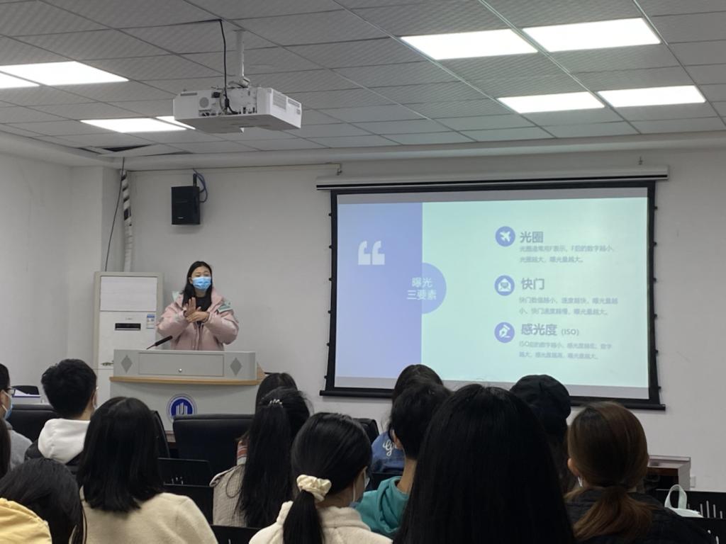 接下来由20人资一班的张静同学进行活动摄影技能培训,从摄影三要素、摄影构图和审美培养三方面系统讲解了摄影的基本知识,并以2138cn太阳集团古天乐2020级本科生入院仪式的活动图片为例介绍了活动拍摄、人物拍摄和会议拍摄的注意事项。