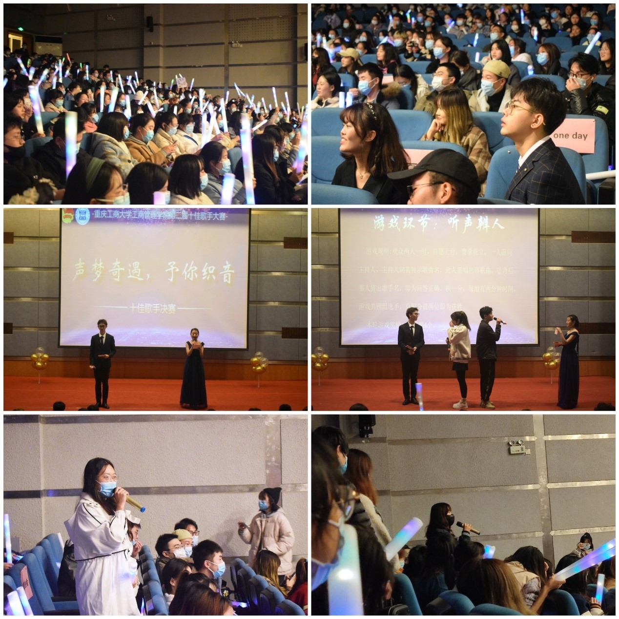 比赛共分为两轮。第一轮为两两合唱,十六位选手将按抽签顺序两两上台演唱自备曲目,由现场评委打分,最后结合评委综合成绩评分排名,排在前十名的选手将进入第二轮比赛。首先,由one day街舞社表演开场舞《dun dun》,现场观众的热情在飒气的舞姿中已被点燃;随着一首首歌曲的演绎,气氛更加热烈,欢呼声中,荧光棒挥出一条通往音乐之门的闪烁大路。《永不失联的爱》的承诺坚守、《凉凉》的三世情缘、《一个像夏天,一个像秋天》的动人友情、《青春修炼手册》的少年元气、《野子》的自由浪漫……歌手的情感,歌曲的魅力,应援团的欢呼,都让现场的氛围更加热烈。在比赛间隙,还有趣味歌曲接龙和猜歌小游戏助兴,更是为现场观众准备了丰厚礼品。进入第二轮的10名选手,发挥出了更高的水平,技巧和感情,都让现场观众意犹未尽。比赛结束,荣获本次十佳歌手的冠亚季军分别是王霞、夏梓洋、郑榕婷;在现场观众的线上投票助力中,柳红被评为“最佳人气奖”;王晓敏,刘昊奇,李昱恒,李梓烨,李约伯,于鑫,王正萍等人荣获“十佳歌手”称号。