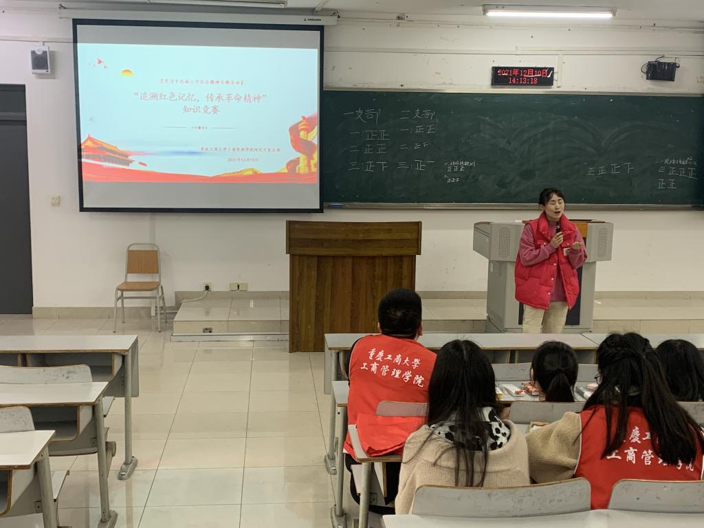 为深入学习和贯彻党的十九届六中全会精神,掀起学习“十九届六中全会”精神的热潮,营造浓厚的学习氛围,2021年12月10日在博智楼7321,研究生一、二支部全体党员共同举办了“追溯红色记忆,传承革命精神”党史知识竞赛活动。