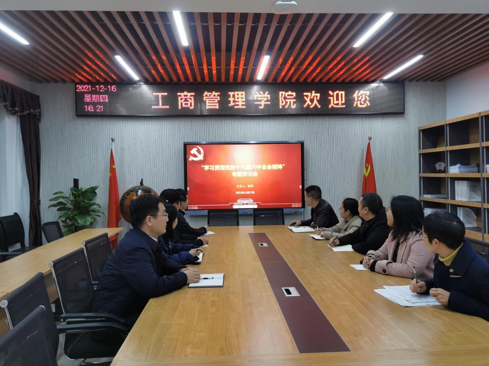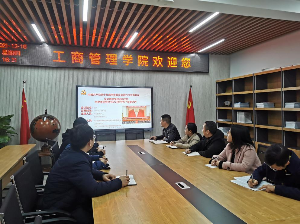 为深入贯彻学习党的十九届六中全会精神,进一步深刻领会六中全会精神的重大意义和深刻内涵,2138cn太阳集团古天乐学科建设办公室、科研办公室、研究生工作办公室、MBA教育中心等部门的行政人员和学院部分教授代表、研究生导师代表于2021年12月17日上午在明德楼4010会议室开展了十九届六中全会精神集中专题学习,此次集中学习由学院副院长陈伟同志主持并领学。