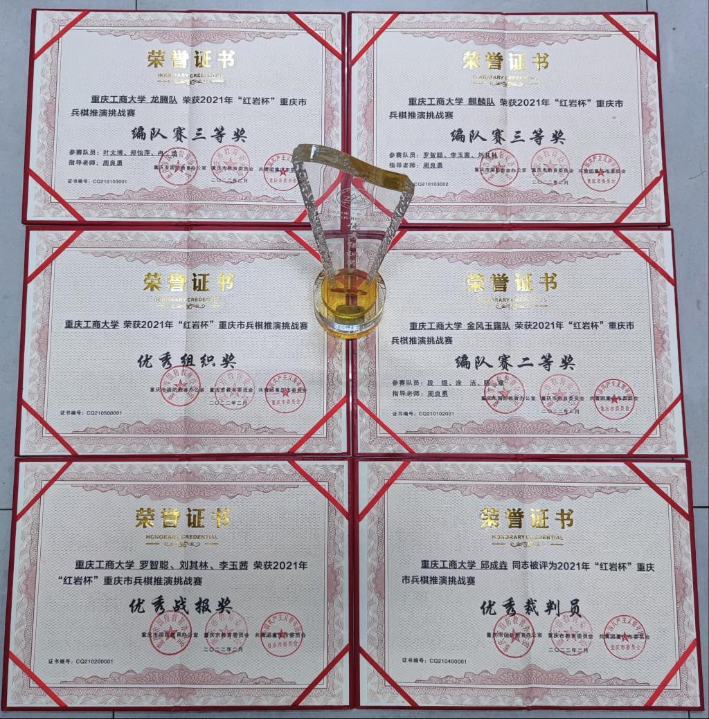 由重庆市国防教育办公室、重庆市教委和团市委联合主办,中国人民解放军陆军勤务学院承办的2021年“红岩杯”重庆市兵棋推演挑战赛,于2021年10月至2022年2月通过线上比赛的方式进行。我校共派出88支队伍参赛,经过激烈角逐,由我院学子组织的三支队伍获得佳绩——金风玉露队(段煜、涂洁、陈章)获得二等奖;龙腾队(叶文博、郑怡萍、冉浩),麒麟队(罗智聪、会计:李玉茜、数统:刘其林)获得三等奖;麒麟队获优秀战报奖。