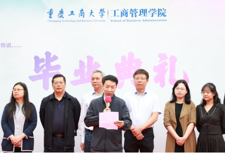 毕业生代表2018级国旅班花蕴彤发言,她用深情优美的歌声代表全体毕业生对母校、对恩师、对同窗感谢,感谢无悔四年中一次次战胜那个胆怯的自己,风雨兼程中那些挫折困难绽放出一朵朵娇艳的花,并表示将带着这份美好的记忆在新征程上谱写工商学子更加精彩的人生故事。