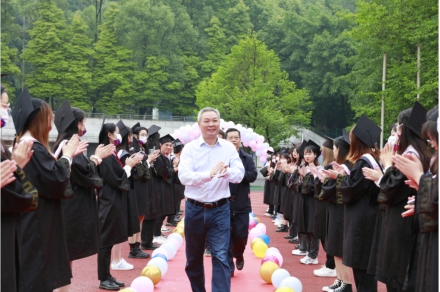 最后,毕业生代表们为辛勤耕耘的老师们送上鲜花,在激昂的校歌中,参加毕业典礼的师生代表合影留恋,按照疫情防控要求,分班拍摄了毕业合影,并在留言板上签名纪念。