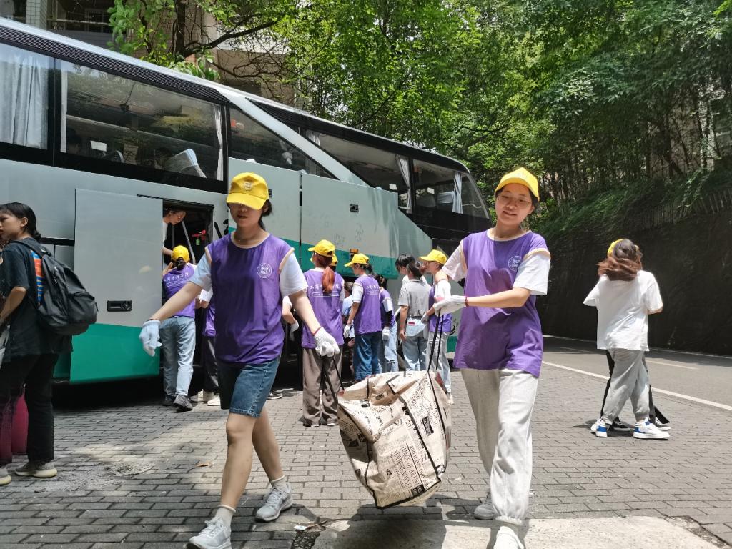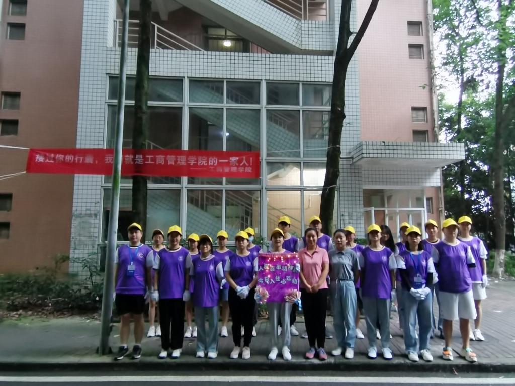 志愿者们将提前准备好的欢迎海报摆放在醒目的入口,希望即将搬来的同学们能感受学院和同学们的热情和期待。在搬迁的汽车驶入校园后,志愿者们全体出动:引导同学有序排队、运送行李、整理宿舍,购买需要的物资等。对于21级的同学们来说,在初入新环境茫然不知去向何方时的一句细语提醒,在搬运行李心累力竭时的一个帮忙的动作,都彰显了学长学姐们的热情温暖以及志愿者们的责任担当。志愿者们身着紫色院服、佩戴着黄色院帽,在搬迁现场形成一道亮丽的风景线,被大家称为最可爱的“小紫人”。志愿者们的默契配合、勇于担当,减轻了同学们的搬迁负担,提高了搬迁效率。2021级的同学们也顺利完成了本次宿舍搬迁行动。