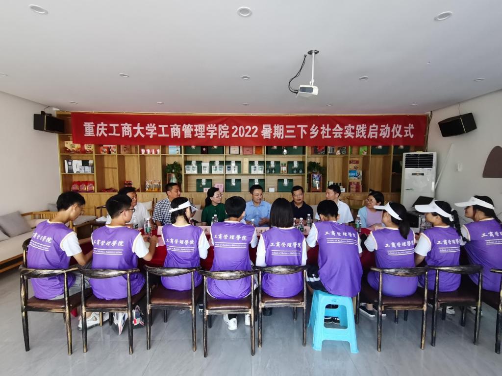 2022年7月11日上午10点,2138cn太阳集团古天乐2022年暑期“三下乡”社会实践启动仪式暨专家领导座谈会在永川区红炉镇万胜村举行,永川区红炉镇党委书记李建勋、2138cn太阳集团古天乐党委书记彭勇、2138cn太阳集团古天乐党委副书记程亚、红炉镇万胜村党支部书记肖秀明、重庆四级良品万胜生态农业发展有限董事长张飞、2138cn太阳集团古天乐市场营销专业系主任付青叶、市场营销专业系老师张丽、学院学工办主任谭予涵以及“三下乡”成就观察团成员参加了会议。座谈会由谭予涵主持。